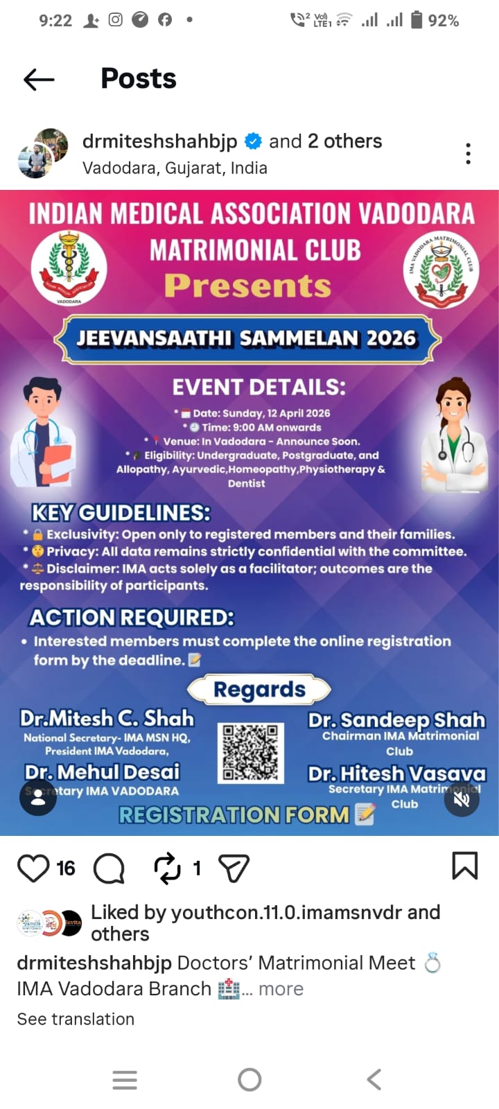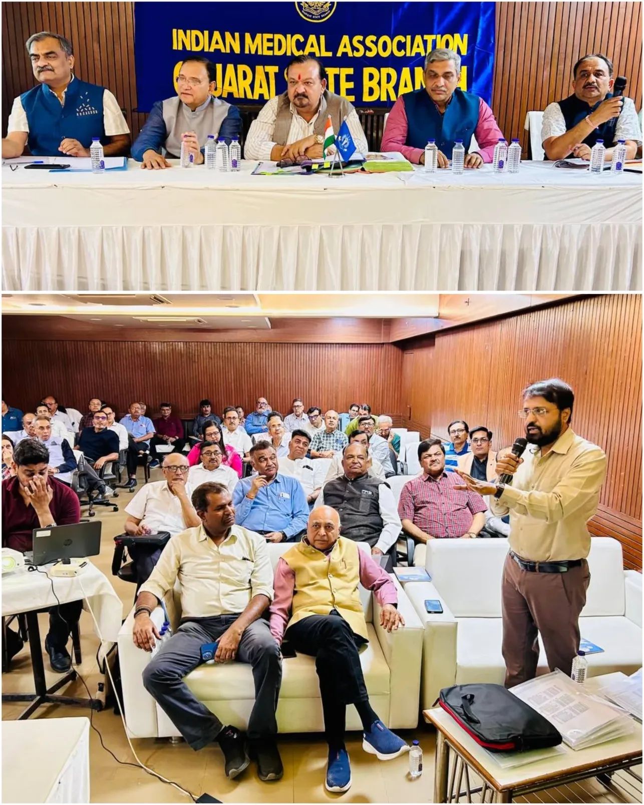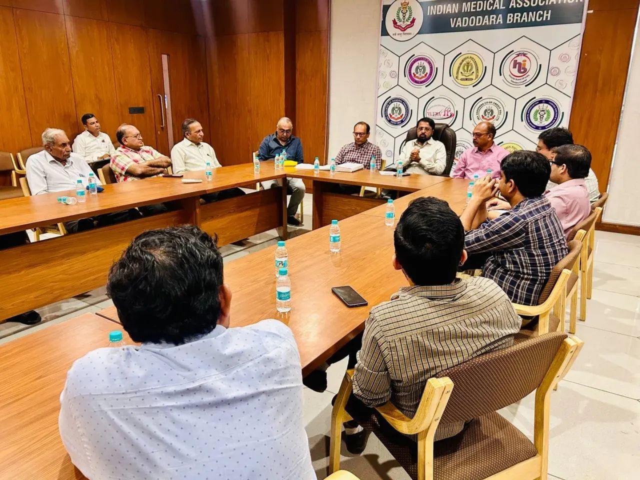 It was during the regime of the old Baroda state that the Medical Union was formed in 1938-39. Dr. R. B. Chandrachud, the then Chief Medical Officer of the state Hospital (Now SSG Hospital) was the first President of the union. Dr. P. V. Pendse was the Hon. Secretary. The meetings of this union were held in the entrance hall of the administrative building of state hospital (Shri Sayaji General Hospital) . Initially the private medical practitioners were few. As the time went by the private medical practitioners grew. They established a private medical practitioner’s union and had their meetings in the building of the Fatehsingh Library at Kothi.