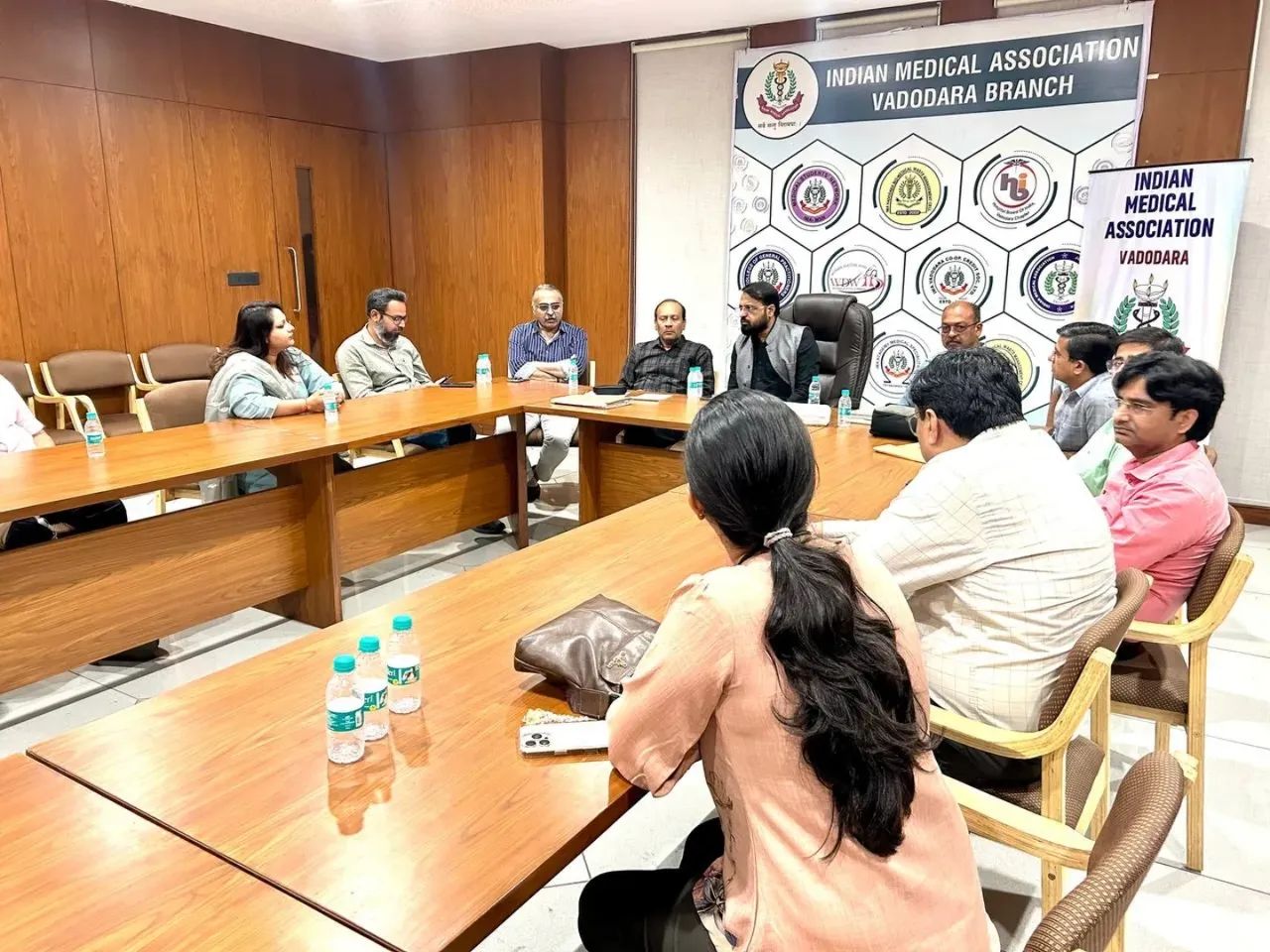 It was during the regime of the old Baroda state that the Medical Union was formed in 1938-39. Dr. R. B. Chandrachud, the then Chief Medical Officer of the state Hospital (Now SSG Hospital) was the first President of the union. Dr. P. V. Pendse was the Hon. Secretary. The meetings of this union were held in the entrance hall of the administrative building of state hospital (Shri Sayaji General Hospital) . Initially the private medical practitioners were few. As the time went by the private medical practitioners grew. They established a private medical practitioner’s union and had their meetings in the building of the Fatehsingh Library at Kothi.